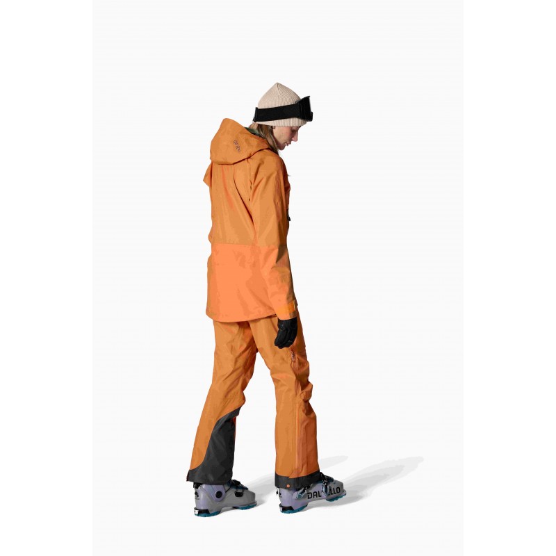 Dwukierunkowy, regulowany kaptur kompatybilny z kaskiem narciarskim posiada ukryte wewnętrzne blokady sznurka umożliwiające regulację jedną ręką nawet w grubych rękawicach. Centralny zamek błyskawiczny YKK® VISLON® AquaGuard® z dolnym zatrzaskiem i wyściełanym polarem ochraniaczem na brodę zwiększa komfort użytkowania w najzimniejszych warunkach górskich. Kurtka wyposażona jest w wewnętrzną kieszeń zapinaną na zamek oraz dodatkową kieszeń siatkową, a przedłużone mankiety z regulacją na rzep oraz wewnętrzne elastyczne mankiety skutecznie chronią przed wnikaniem śniegu. Odpinany śnieżny fartuch z elastycznego materiału Matrix™ z podwójnymi zatrzaskami zapewnia dodatkową ochronę podczas jazdy w głębokim puchu.