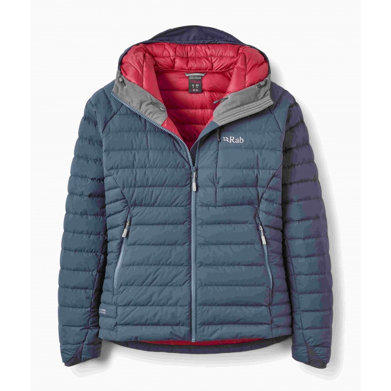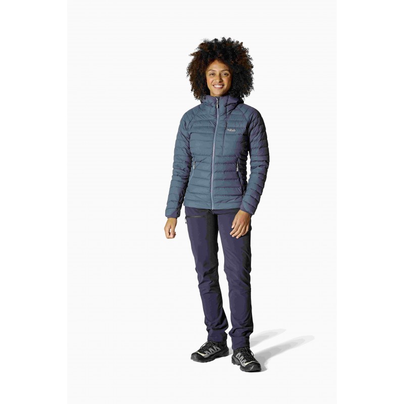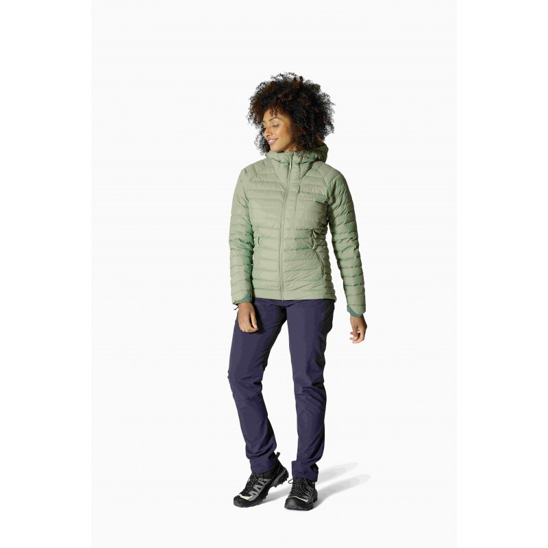 Damska kurtka puchowa Rab Microlight Windstopper Hoody to lekka, wiatroszczelna i oddychająca kurtka górska z wypełnieniem z recyklingu, idealna na każdą porę roku.
