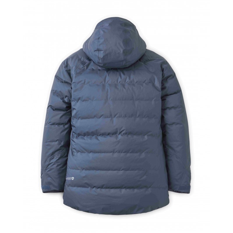 Wypełnienie z certyfikowanego europejskiego puchu gęsiego o parametrze 800 cuin, z hydrofobową impregnacją Nikwax, gwarantuje wyjątkową izolację termiczną nawet w warunkach podwyższonej wilgotności. Komory puchowe zaprojektowano tak, aby eliminować mostki termiczne w kluczowych obszarach, zapewniając równomierną ochronę przed mrozem. W pełni regulowany, kompatybilny z kaskiem kaptur z usztywnionym daszkiem oferuje doskonałą osłonę twarzy bez ograniczania pola widzenia, co ma kluczowe znaczenie podczas technicznych wspinaczek. Dwukierunkowy zamek błyskawiczny YKK® VISLON® z wewnętrzną listwą przeciwwiatrową i osłoną podbródka zapobiega przedostawaniu się zimnego powietrza.