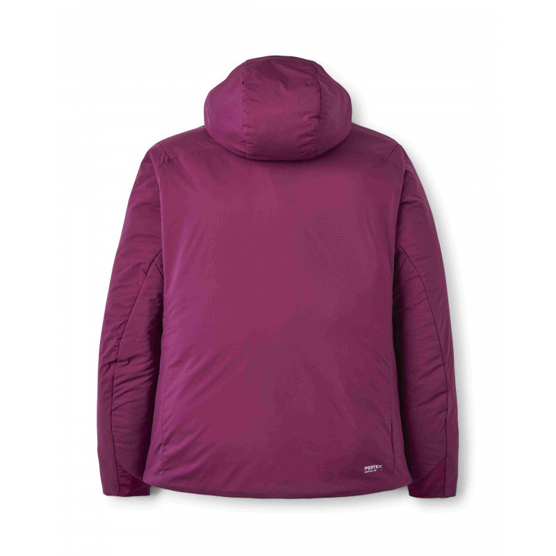 Rewolucyjna izolacja Primaloft® Gold Active Ultra o gramaturze 20g/m² wykorzystuje strukturę mikroporowatą, adaptującą się do poziomu aktywności, tworząc idealny mikroklimat. System mapowania termicznego ciała kobiecego pozwolił na strategiczne rozmieszczenie ociepliny, zwiększając jej grubość w obszarach bardziej wrażliwych na wychłodzenie, takich jak klatka piersiowa i nerki, jednocześnie redukując ilość izolacji w strefach o zwiększonej produkcji ciepła. Lekki, ergonomiczny kaptur idealnie przylega do głowy, nie ograniczając widoczności podczas ekspozycyjnych przejść. Precyzyjnie wykonane szwy płaskie eliminują punkty nacisku pod pasami plecaka czy uprzężą wspinaczkową, zapewniając najwyższy komfort podczas całodniowej aktywności. Dwie dyskretne kieszenie z zamkami YKK® umieszczone na wysokości klatki piersiowej pozostają dostępne nawet z założoną uprzężą, a jedna z nich przekształca się w kompaktowy worek transportowy z pętlą mocującą.
