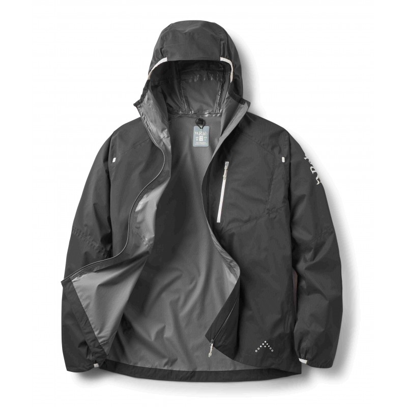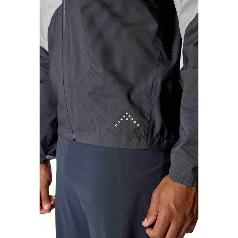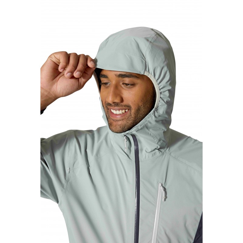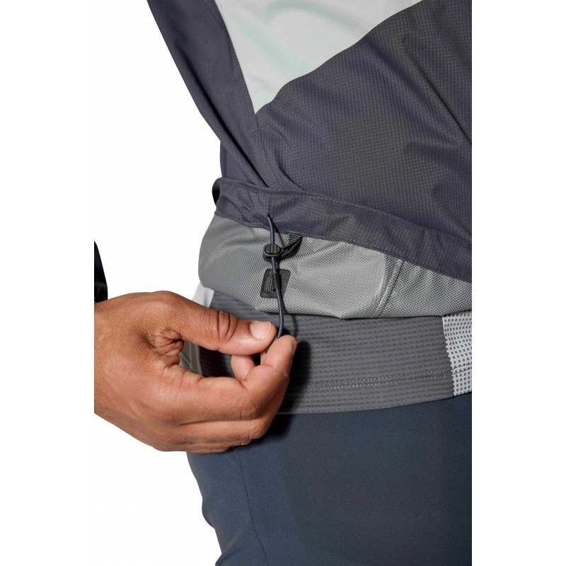 Kurtka została wyposażona w półelastyczny kaptur ze wzmocnionym daszkiem i tylną regulacją objętości, który można łatwo dopasować jedną ręką, co jest niezwykle przydatne podczas biegu w zmiennych warunkach. Dwukierunkowy zamek YKK® AquaGuard® z osłoną podbródka umożliwia łatwą wentylację oraz zapewnia kompatybilność z uprzężą wspinaczkową, co docenią miłośnicy wymagających tras alpejskich. Minimalnego, ale przemyślanego zestawu funkcji dopełnia pojedyncza kieszeń piersiowa na zamek YKK® AquaGuard®, która pełni również rolę zintegrowanego worka kompresyjnego. Ta funkcjonalność pozwala na błyskawiczne spakowanie kurtki do minimalnych rozmiarów, dzięki czemu zajmuje ona niewiele miejsca w plecaku biegowym lub kamizelce.