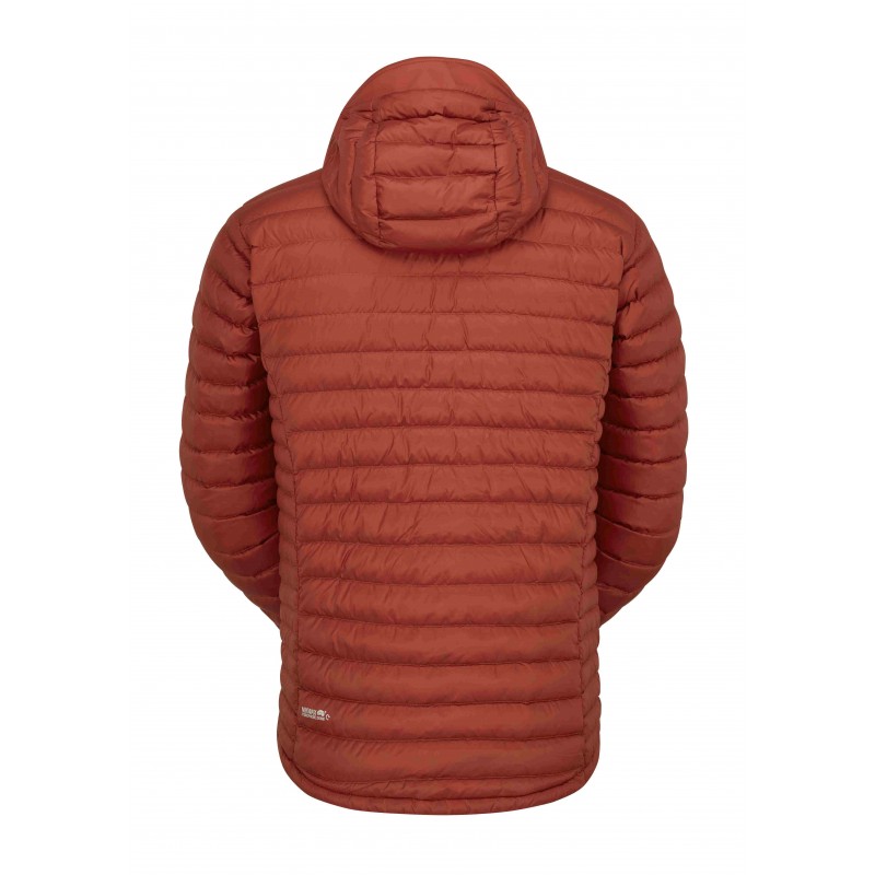 Wewnętrzne wypełnienie stanowi etycznie pozyskiwany europejski puch gęsi o współczynniku wypełnienia 700FP z certyfikatem RDS (Responsible Down Standard), poddany hydroizolacyjnemu wykończeniu Nikwax, które znacząco zwiększa jego odporność na wilgoć. System komór puchowych z przeszyciami minimalizuje przemieszczanie się puchu, zapewniając równomierne rozprowadzenie ciepła nawet po wielu latach użytkowania. Dopracowana konstrukcja obejmuje ergonomicznie zaprojektowane rękawy z elastycznymi mankietami, regulowany system ściągaczy dolnych oraz dopasowany, regulowany kaptur ze wzmocnionym daszkiem, który zapewnia doskonałą ochronę twarzy przed wiatrem i deszczem. Główny zamek YKK został wyposażony w wewnętrzną listwę termiczną i miękką osłonę podbródka.