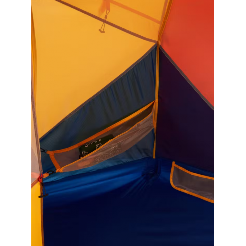 Dodatkowe boczne skrzydła zapewniają dodatkową przestrzeń do przechowywania sprzętu, co doskonale uzupełnia funkcjonalny charakter tego dwuosobowego namiotu. Wewnątrz znajdziesz praktyczne kieszenie do organizacji drobnych przedmiotów oraz specjalną kieszeń na czołówkę, która przekształca punktowe światło w przyjemne, rozproszone oświetlenie. Unikalnym elementem wyposażenia jest linka do suszenia umieszczona w górnej części namiotu, pozwalająca na zawieszenie wilgotnego ubrania lub sprzętu po deszczowym dniu wędrówki. Limelight 2P zapewnia pełną ochronę przed niekorzystnymi warunkami atmosferycznymi dzięki pełnemu tropikowi z podklejanymi szwami i zintegrowanym otworom wentylacyjnym. Podłoga typu wannowego również z podklejanymi szwami skutecznie izoluje od wilgoci podłoża.