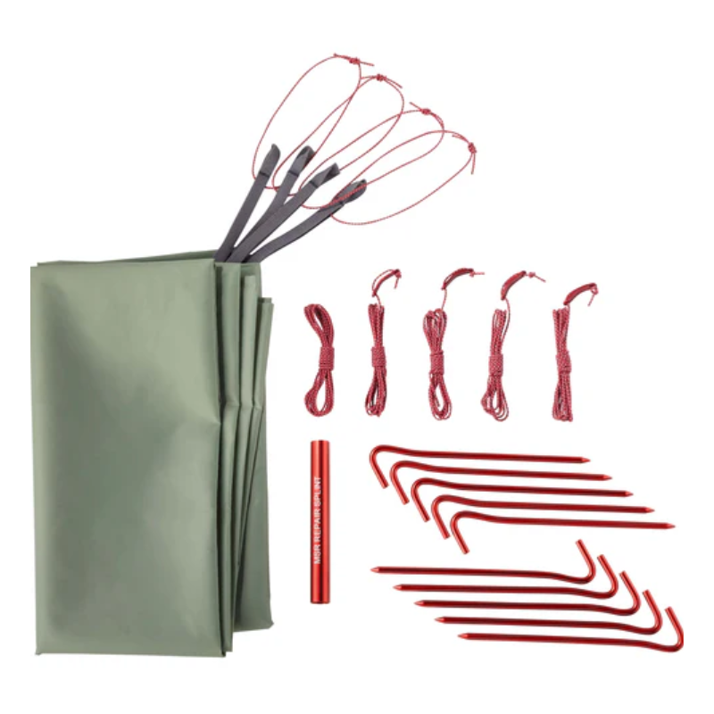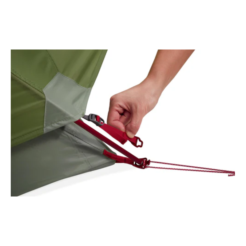 Konstrukcja zewnętrzna namiotu MSR Elixir 1 została zaprojektowana z myślą o prostocie i funkcjonalności. System kolorowych klipsów oraz słupków znacznie ułatwia montaż, nawet podczas pierwszego użycia. Wytrzymałe aluminiowe stelaże w połączeniu z powłoką wodoodporną wolną od PFAS oraz taśmowanymi szwami zapewniają stabilność i ochronę przed deszczem. Przestronny przedsionek pod tropikiemumożliwia przechowywanie plecaka oraz innego sprzętu, który nie musi znajdować się wewnątrz. Wejście do przedsionka wyposażono w system StayDry, który skutecznie odprowadza krople deszczu, a ulepszona wentylacja kickstand zapewnia doskonały przepływ powietrza.