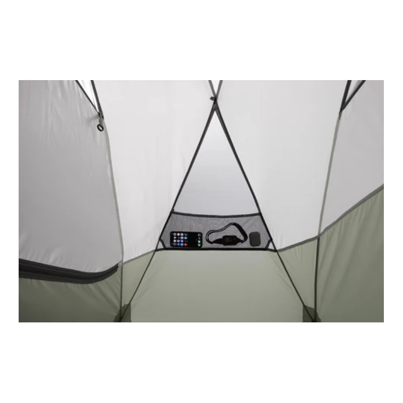 Wnętrze namiotu oferuje imponującą powierzchnię 1,70 metra kwadratowego, co pozwala na swobodne rozłożenie się po całym dniu wędrówki. Prostokątna podłoga została zaprojektowana z myślą o współczesnych szerokich matach turystycznych, zapewniając maksymalny komfort noclegowy. Korpus namiotu stanowi przemyślane połączenie siatki mesh oraz solidnego materiału, gwarantując optymalną wentylację przy jednoczesnym zachowaniu prywatności. Drzwi wejściowe wyposażono w zamki błyskawiczne zaprojektowane do obsługi jedną ręką, które zbiegają się w jednym punkcie, dzięki czemu nawet w ciemności bez problemu odnajdziesz wejście.