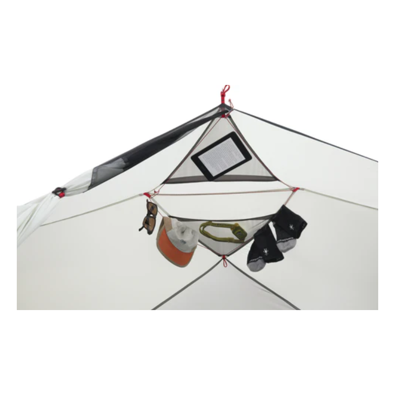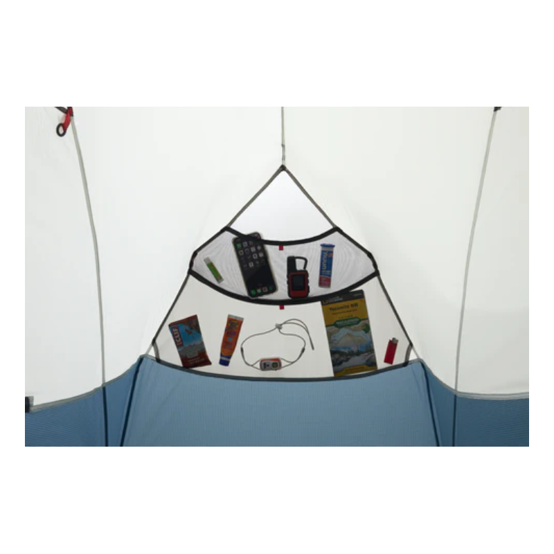 Innowacyjne drzwi przedsionka zostały zaprojektowane z myślą o łatwym wchodzeniu i wychodzeniu, a system StayDrychwyta krople deszczu, zapobiegając ich przedostawaniu się do środka. Zmodernizowany wentylator typu kickstand zapewnia doskonały przepływ powietrza, eliminując kondensację i poprawiając komfort podczas dłuższego pobytu w namiocie. W zestawie znajdują się dodatkowe linki odciągowe, które pozwalają dostosować konfigurację do panujących warunków i znacząco zwiększyć stabilność konstrukcji podczas silnych podmuchów wiatru. Wnętrze namiotu wykonano głównie z litej tkaniny nylonowej, co maksymalizuje ochronę przed niepogodą, uzupełniając ją odpowiednią ilością barwionej w masie mikrosiatki zapewniającej oddychalność i ochronę przed insektami. Wytrzymałe drzwi bez zakrzywień wyposażono w zamki błyskawiczne obsługiwane jedną ręką, które zamykają się w jednym punkcie, dzięki czemu zawsze wiesz, gdzie otworzyć namiot, nawet w całkowitej ciemności. Technologiczne kieszenie z portami kablowymi w rogach ułatwiają korzystanie ze słuchawek i ładowanie urządzeń elektronicznych.