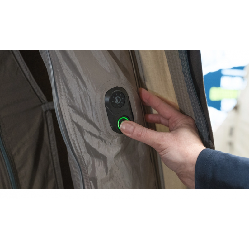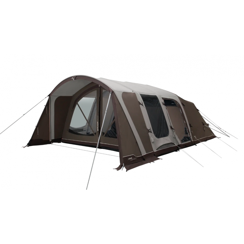 Alabama 6 Air TC wyposażony jest w innowacyjny system Rigid Air System z wytrzymałymi rurami DuraAir wolnymi od PVC. Rozstawienie namiotu zajmuje zaledwie kilkanaście minut dzięki prostemu systemowi pompowania, a wstępnie ukształtowane rury powietrzne tworzą imponującą wysokość wewnętrzną, pozwalając na swobodne poruszanie się po całej przestrzeni. Namiot oferuje przemyślaną konfigurację przestrzeni z dwiema ciemnymi sypialniami Ambassador o wysokości 230 cm, wyposażonymi w wentylację z siatki dla maksymalnego komfortu snu. Przestronna strefa dzienna może być dodatkowo rozszerzona dzięki podwijanym drzwiom i dużym oknom, które tworzą panoramiczny widok i doskonałą wentylację krzyżową.