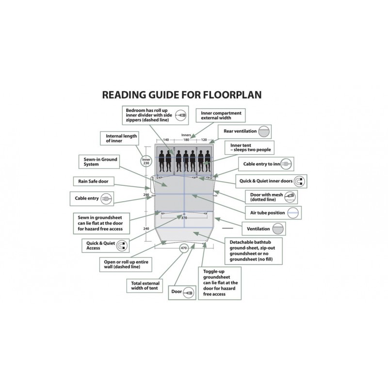 • namiot z podwójnym przodem, może być używany jako namiot trzy strefowy lub z otwartym przednim daszkiem