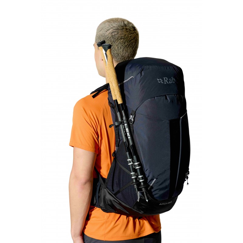 Pętle do mocowania kijków trekkingowych z elastycznymi linkami oraz górne i dolne paski kompresyjne zapewniają stabilne przymocowanie dodatkowego sprzętu i możliwość kompresji zawartości. Pas biodrowy z przednią regulacją i kieszeniami na zamki błyskawiczne gwarantuje komfortowe rozłożenie ciężaru oraz szybki dostęp do najczęściej używanych przedmiotów. Plecak wykonano z wysokiej jakości materiałów zawierających znaczny udział recyklingu, co czyni go wyborem przyjaznym dla środowiska. W zestawie znajduje się pokrowiec przeciwdeszczowy chroniący zawartość przed opadami atmosferycznymi. Ważący zaledwie jeden przecinek dwadzieścia osiem kilograma plecak Rab Airox 36 to idealny towarzysz górskich przygód.