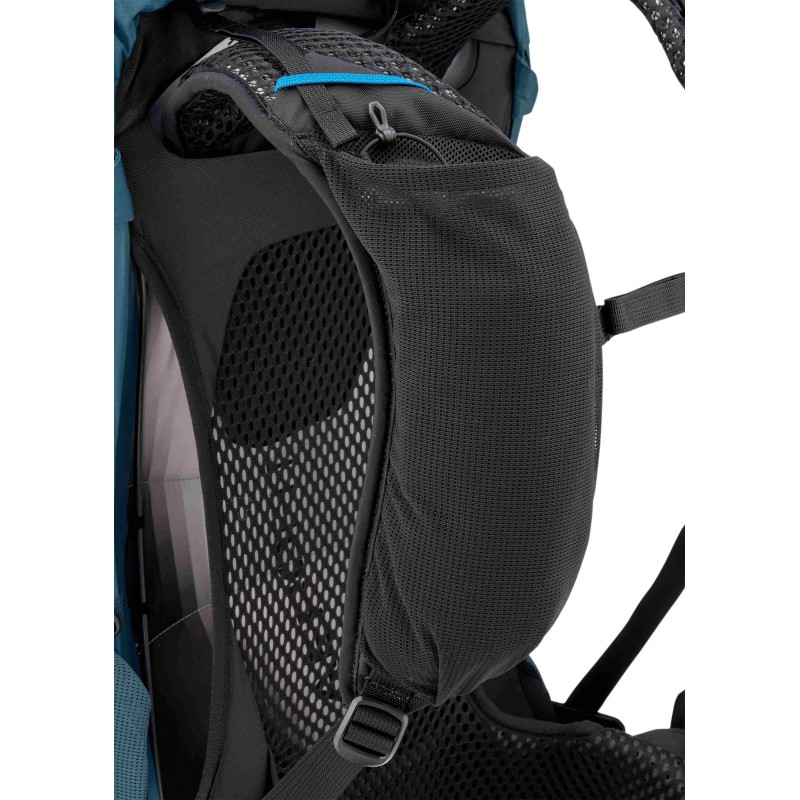 System hydratacji został kompleksowo zaprojektowany z myślą o długich trekkingach w terenie górskim. Wewnętrzna kieszeń pomieści bukłak o pojemności do trzech litrów z dedykowanym wyjściem na wężyk picia, natomiast boczne kieszenie z rozciągliwej siatki mesh idealnie nadają się na butelki z wodą lub napoje energetyczne. Pas piersiowy wyposażono w funkcjonalne schowki umożliwiające przenoszenie miękkiego bidonu oraz najważniejszych drobiazgów w zasięgu ręki, co pozwala na nawadnianie się bez zatrzymywania marszu.