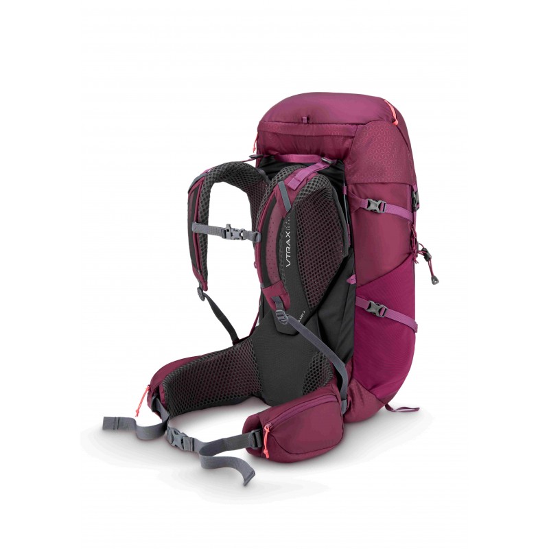 Ergonomicznie wyprofilowana podkładka lędźwiowa współpracuje z kobiecą anatomią, oferując doskonałe wsparcie podczas długich dni spędzonych na szlaku lub na ścianie. Intuicyjny system regulacji pasa biodrowego poprzez pociągnięcie do przodu umożliwia błyskawiczne dostosowanie nawet w trudnym terenie, zapewniając niezachwianą stabilność całej konstrukcji. Funkcjonalność plecaka podnoszą przemyślane rozwiązania, takie jak dwie poręczne kieszenie na pasie biodrowym, boczny dostęp do głównej komory umożliwiający szybkie wydobycie potrzebnego sprzętu bez zdejmowania plecaka oraz stała klapa z zewnętrzną i wewnętrzną kieszenią na zamek. Dodatkową przestrzeń transportową zapewniają przednia kieszeń oraz dwie boczne kieszenie z elastycznej siatki, idealne do przechowywania przedmiotów wymagających szybkiego dostępu.
