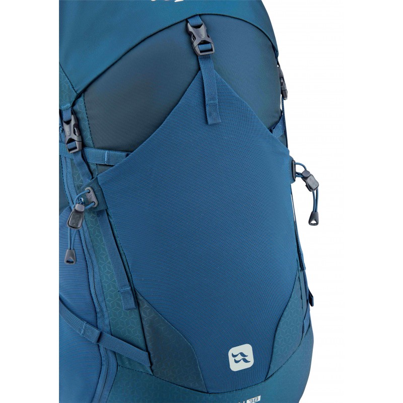 Ergonomicznie ukształtowane panele tylne oraz oddychające materiały skutecznie odprowadzają nadmiar ciepła i wilgoci, gwarantując komfort termiczny w każdych warunkach. Przemyślany design Exion 38 obejmuje szybki dostęp do zawartości zarówno od góry, jak i przez panel tylny, co umożliwia wydobycie potrzebnego sprzętu bez konieczności zdejmowania plecaka w ekspozycji. Zewnętrzny system mocowań umożliwia bezpieczny transport liny, kasków, raków, czekanów oraz innego sprzętu technicznego niezbędnego podczas zaawansowanych przejść alpejskich. Dodatkowe udogodnienia, takie jak hydrofobowe kieszenie na elektronikę, wzmocnione dno odporne na kontakt z wilgotnym podłożem oraz zintegrowane punkty mocowania dla sprzętu asekuracyjnego, podnoszą funkcjonalność tego modelu. Odpinany pas biodrowy umożliwia komfortowe użytkowanie plecaka w kombinacji z uprzężą wspinaczkową, co docenią wszyscy prowadzący długie drogi wielowyciągowe.