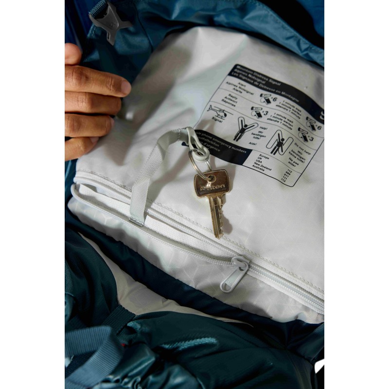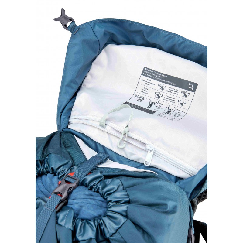 Anatomicznie wyprofilowana podkładka lędźwiowa współgra z kobiecą fizjonomią, oferując optymalne wsparcie podczas wielogodzinnej aktywności. Zaawansowany pas biodrowy z regulacją poprzez pociągnięcie do przodu umożliwia błyskawiczne dostosowanie parametrów nawet w rękawicach, co jest nieocenione w zimowych warunkach wysokogórskich. Praktyczne rozwiązania projektowe obejmują zapinany na zamek dostęp w kształcie litery U z przodu plecaka, umożliwiający błyskawiczne dotarcie do sprzętu umieszczonego na dnie. Stabilizację zawartości zapewniają podwójne paski kompresyjne u podstawy, doskonałe także do mocowania lin czy mat biwakowych. Stała klapa wyposażona w zewnętrzną i wewnętrzną kieszeń oferuje bezpieczne miejsce na najpotrzebniejsze akcesoria. Komfort użytkowania zwiększają dwie funkcjonalne kieszenie na pasie biodrowym, pojemna kieszeń przednia oraz dwie elastyczne kieszenie boczne, idealne do przechowywania bidonów czy przekąsek energetycznych. Profesjonalny charakter plecaka podkreślają dedykowane punkty mocowania kijów trekkingowych i czekanów, niezbędnych podczas trawersu lodowców. Pełną ochronę przed zmiennymi warunkami atmosferycznymi zapewnia zintegrowany pokrowiec przeciwdeszczowy.