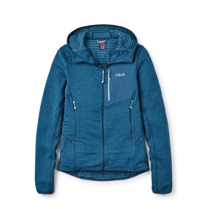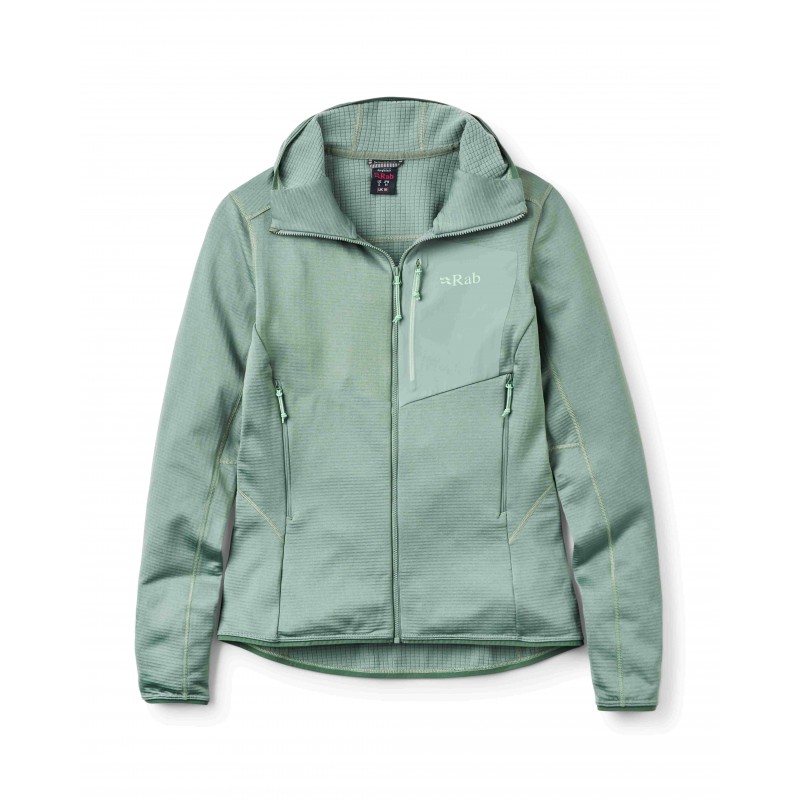 Damski Polar Rab Ascendor Light Hoody to ultralekka warstwa termiczna dla aktywnych kobiet poszukujących mobilności w górach.