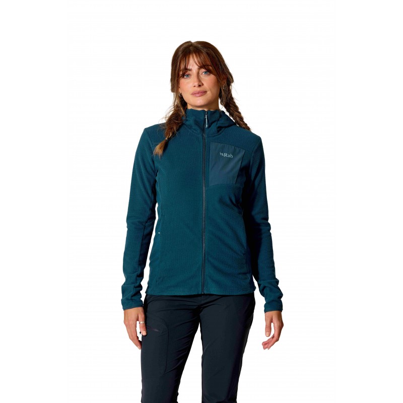 Rab Tecton Hoody Wmns to innowacyjna bluza polarowa z kapturem, stworzona z myślą o kobietach poszukujących wszechstronnego elementu garderoby outdoorowej.