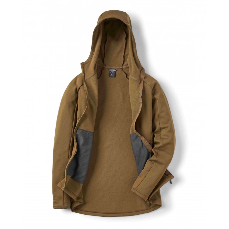 Kaptur został zaprojektowany tak, aby można było go wygodnie nosić pod kaskiem, co docenią zwłaszcza miłośnicy wspinaczki i sportów ekstremalnych. Niskoprofilowe szwy typu overlock gwarantują wyjątkowy komfort noszenia, eliminując ryzyko otarć nawet podczas wielogodzinnych aktywności. Polar Rab Covex Hoody wyposażono w pełnej długości zamek błyskawiczny YKK®, który umożliwia szybką regulację temperatury ciała w zależności od intensywności wysiłku. Dwie kieszenie zamykane na zamki YKK® zapewniają bezpieczne przechowywanie niezbędnych drobiazgów podczas górskich wędrówek. Bluza została wykonana z materiału Thermic™ Soft Stretch Fleece z czesanym tyłem o gramaturze 245g/m², składającego się w 95% z poliestru i 5% elastanu. Ta starannie dobrana kompozycja gwarantuje optymalną elastyczność, trwałość i zachowanie ciepła nawet w wymagających warunkach.