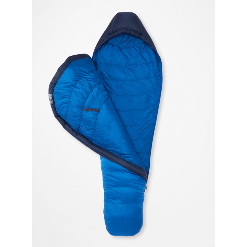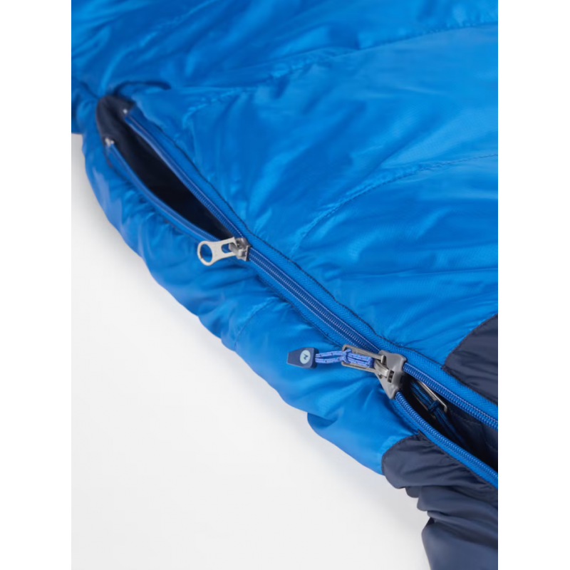 Konstrukcja śpiwora została zaprojektowana z myślą o maksymalizacji ciepła i komfortu użytkownika. Anatomicznie ukształtowana komora na stopy z owijającą konstrukcją zapewnia optymalną cyrkulację ciepła w najbardziej narażonej na wychłodzenie części ciała. Gładkie, zakrzywione przegrody skutecznie zapobiegają przemieszczaniu się puchu, eliminując problem zimnych miejsc i zapewniając równomierne rozprowadzenie ciepła wewnątrz śpiwora. Praktyczne rozwiązania zwiększają funkcjonalność Marmot Helium podczas wymagających wypraw. Główny zamek wyposażony w system anty-zacinający umożliwia płynne otwieranie i zamykanie śpiwora nawet w rękawiczkach. Dodatkowy, składany zamek zapewnia dodatkową wentylację w razie potrzeby oraz ułatwia wchodzenie i wychodzenie ze śpiwora.