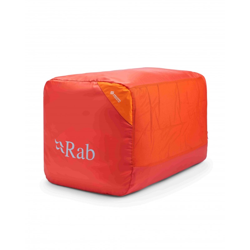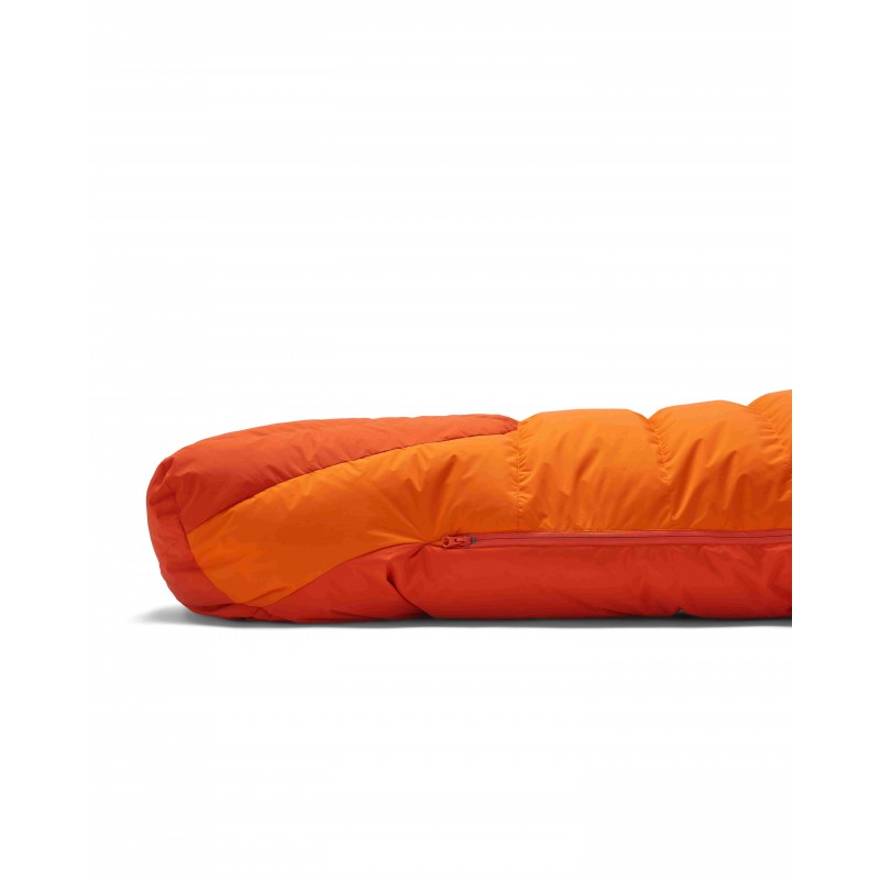 W zestawie znajduje się bawełniany worek do przechowywania z wodoodpornym dnem oraz kompresyjny wodoodporny worek transportowy. Śpiwór został wykończony przyjazną dla środowiska powłoką hydrofobową bez fluorowęglowodorów, co odzwierciedla zaangażowanie firmy Rab w zrównoważony rozwój bez kompromisów w zakresie