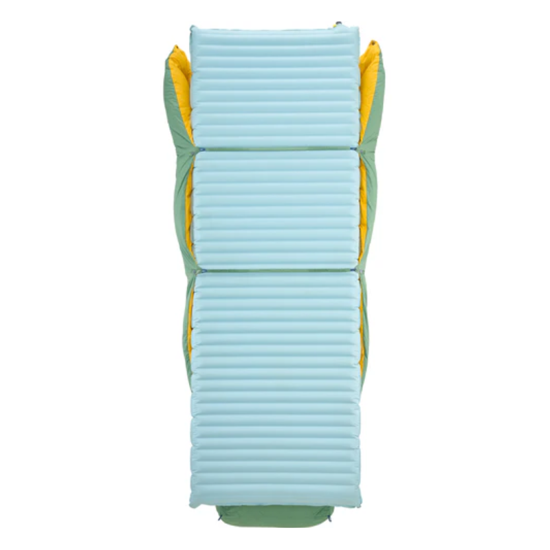 • złącza SynergyLink™, zdejmowane ultraekkie paski tworzą bezpieczne połączenie między śpiworem a matą, optymalizując komfort i efektywność termiczną całego systemu do spania. Złącza SynergyLink najlepiej współpracują z matami w rozmiarze regular o grubości 3 cali lub mniej po napompowaniu.