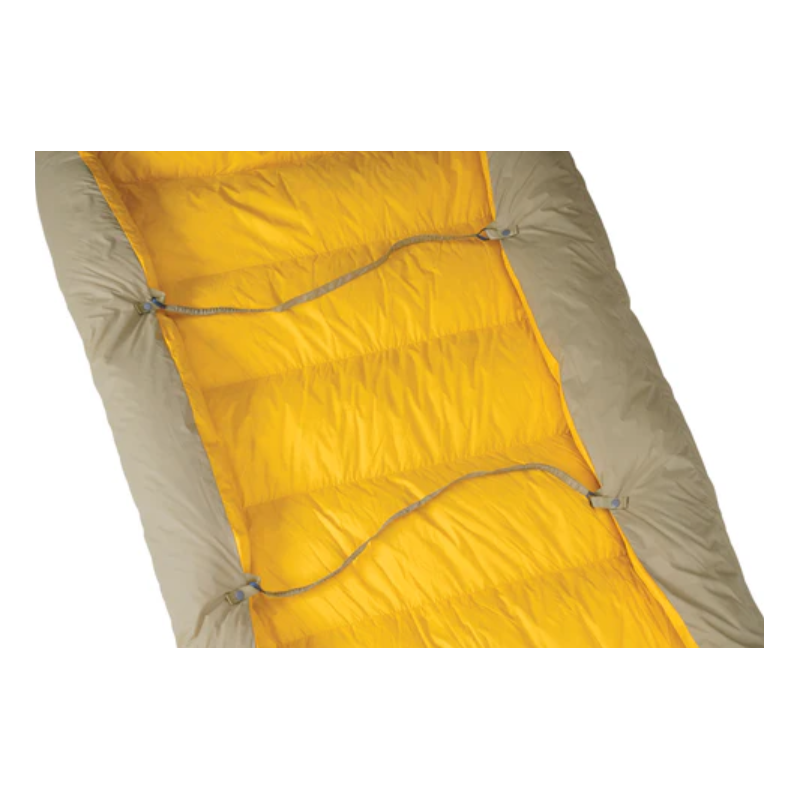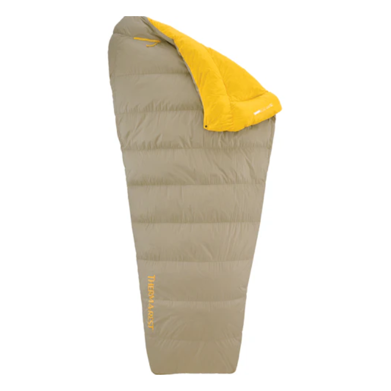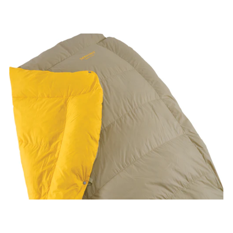 Śpiwór puchowy kołdra Therm a Rest Corus 32F 0C do trekkingu i biwaku trzysezowego z hydrofobowym puchem.