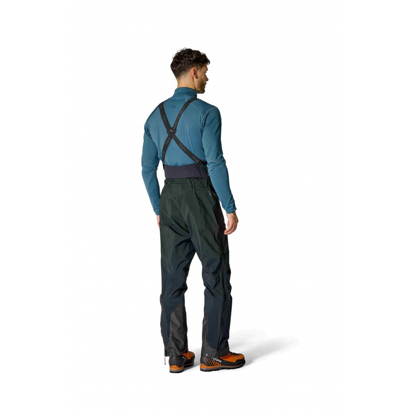 Pełnej długości zamki YKK® AquaGuard® Vizlon po bokach nogawek umożliwiają błyskawiczne zakładanie i zdejmowanie spodni, nawet w butach wspinaczkowych czy narciarskich. Dzięki temu rozwiązaniu, możesz łatwo regulować wentylację podczas intensywnego podejścia, a następnie szybko zwiększyć ochronę przed chłodem na eksponowanym szczycie. Wysoki stan typu bib z zintegrowanym, elastycznym panelem z materiału Matrix™ stretch na plecach zapewnia doskonały komfort i stabilność spodni podczas dynamicznych ruchów. Regulacja na rzepy po obu stronach talii pozwala idealnie dopasować spodnie do sylwetki, co jest kluczowe podczas długotrwałych wspinaczek.